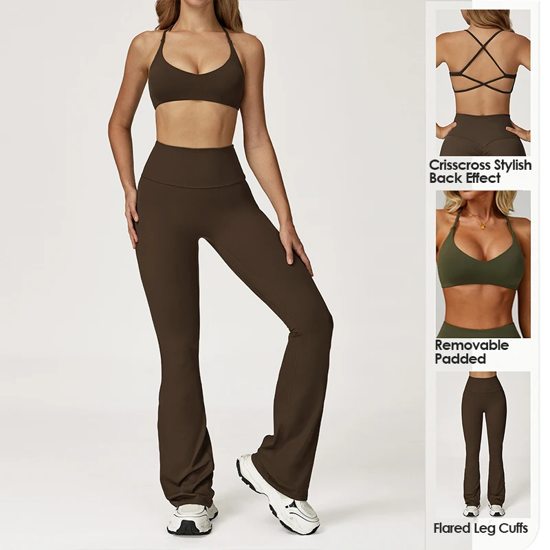 New Soft Sport Wear Women Sports Bra Flare Leggings Set High Quality Gym Fitness Yoga Wear Custmise logo Women's Sports Sets