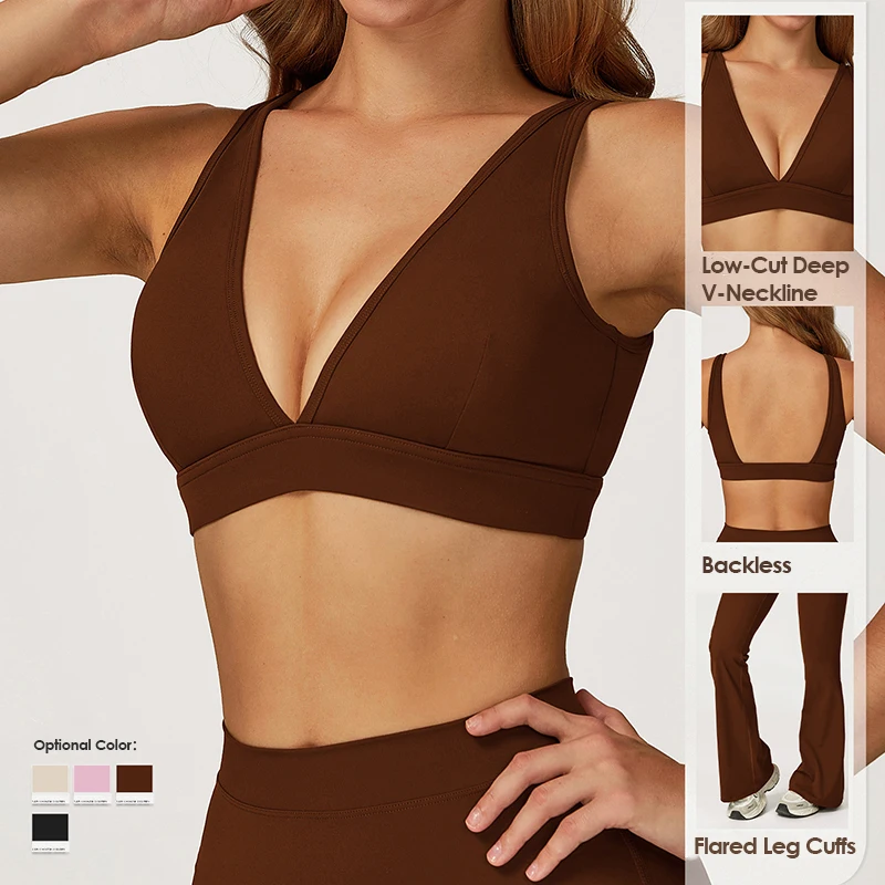 Wholesale High Quality Flared Leg Activewear Custom logo Women High Waist Yoga Pants Deep V Sports Bra Gym Outfit Yoga Sets