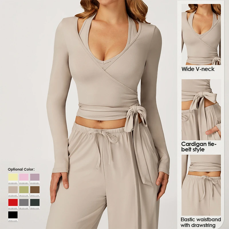 Custom Logo Breathable Fashion One-piece Long Sleeve Bandage Gym Crop Top Women Running Pilates Fitness Wear Regular Fit