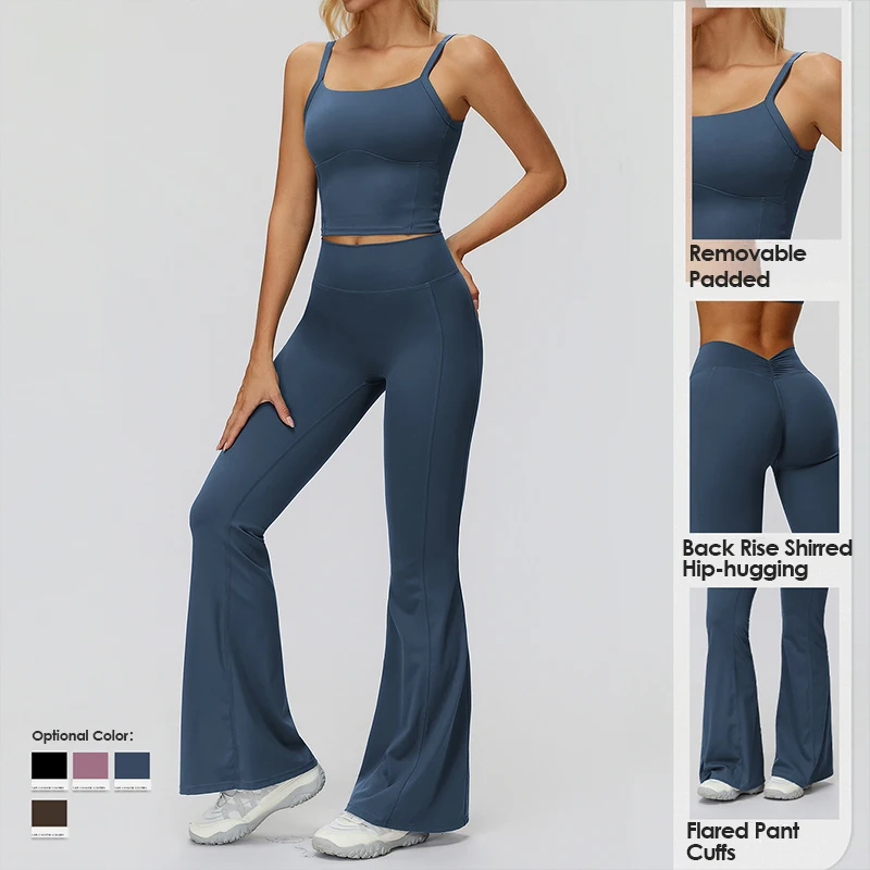 YISHENHON Recyclable Fabric Quick Dry Yoga V Waist Gym Leggings Running Workout Wide Leg Pants Flare Woman Sport Pants