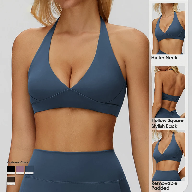 Evaricky Women's Yoga Crop Top Open Back Halter Sports Bra Breathable High Support Activewear Workout Tops