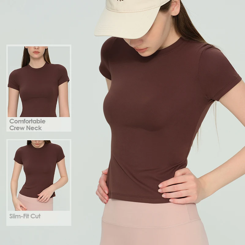 YISHENHON 2026 New Design Quick Drying Casual Tight Short Sleeve Yoga Wear Women High Intensity Running Sports Fitness T-shirt