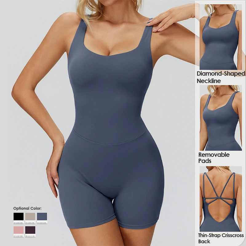 Evaricky Fashion Women's Fitness Workout Romper Yoga Wear Tight Bodysuit Gym Clothing Active Wear One Piece Quick Dry Breathable