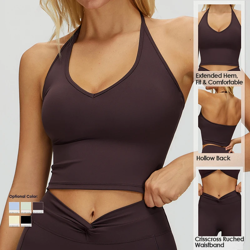 Evaricky 2pcs Women Yoga Set Workout Sportswear Gym Fitness Clothing Halter Sports Tank Top High Waist Leggings Sports Suits