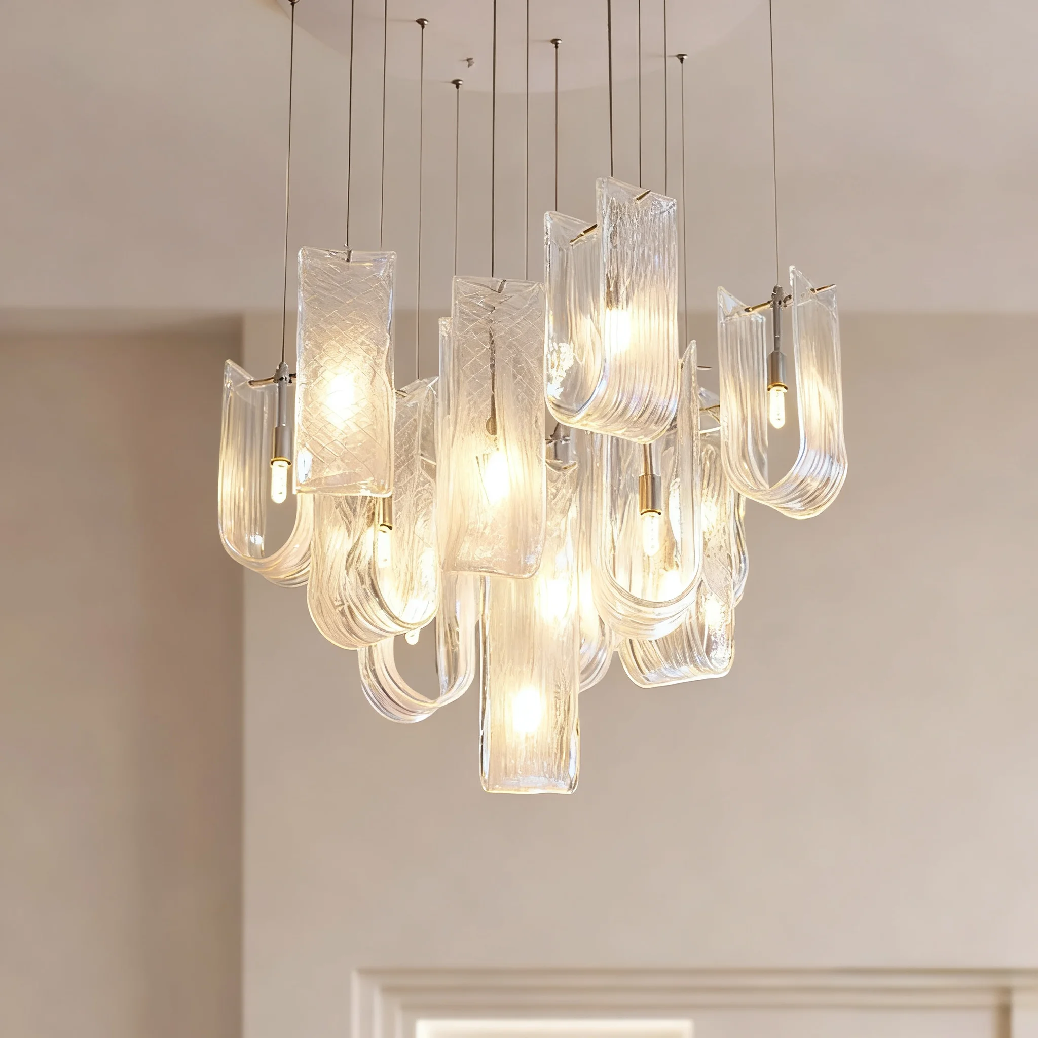 JACKSUN Italian Modern Large 19-Heads Luxury Cloud Glass Chandelier Iron Frame Villa Chandeliers Decor Glass Pendant Lights