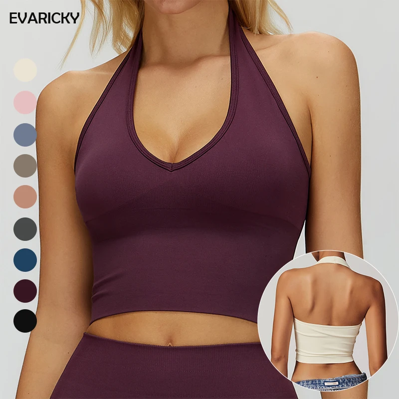 Evaricky Wholesale High Quality Fashion Womens Halter Neck Sports Tank Top Gym Fitness Yoga Wear Running Workout Top for Women