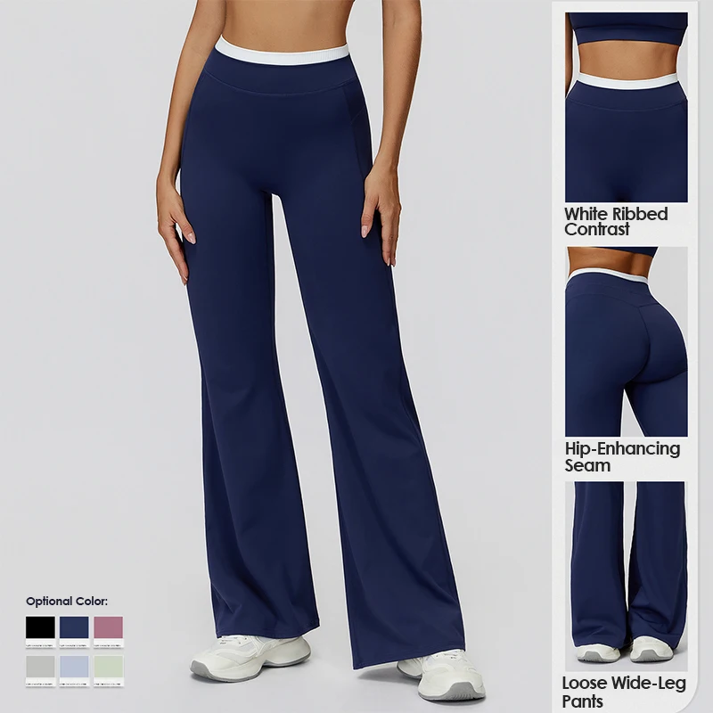 YISHENHON Recyclable Fabric Quick Dry Yoga V Waist Gym Leggings Running Workout Wide Leg Pants Flare Woman Sport Pants