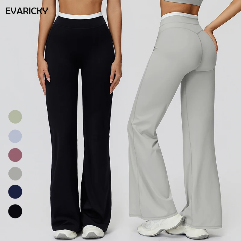 Evaricky Custom Breathable High Waisted Flared Soild Yoga Pants Gym Fitness Butt Lifting Workout Wide Leg Yoga Leggings Women
