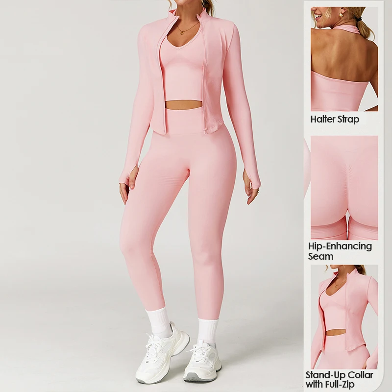 Evaricky Seamless Yoga Pant Yoga Leggings Sports Bra Yoga Jacket Woman Yoga 3 Piece Workout Set Women Clothing Activewear Sets