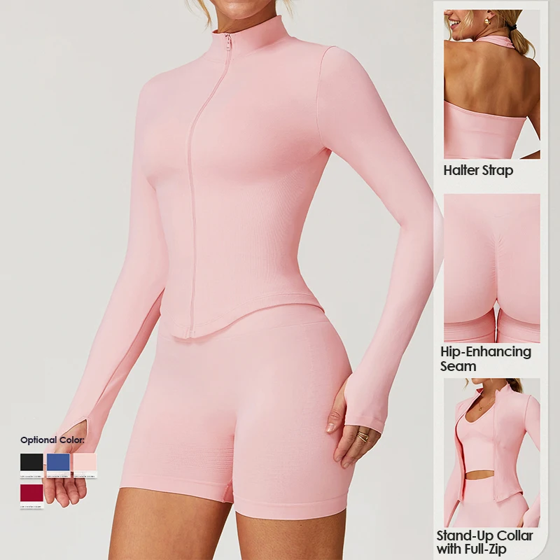 YISHENHON New Arrivals Quick-drying Women's Tight Running Sports Fitness Yoga Jacket Activewear Zip Long Sleeve Workout Crop Top