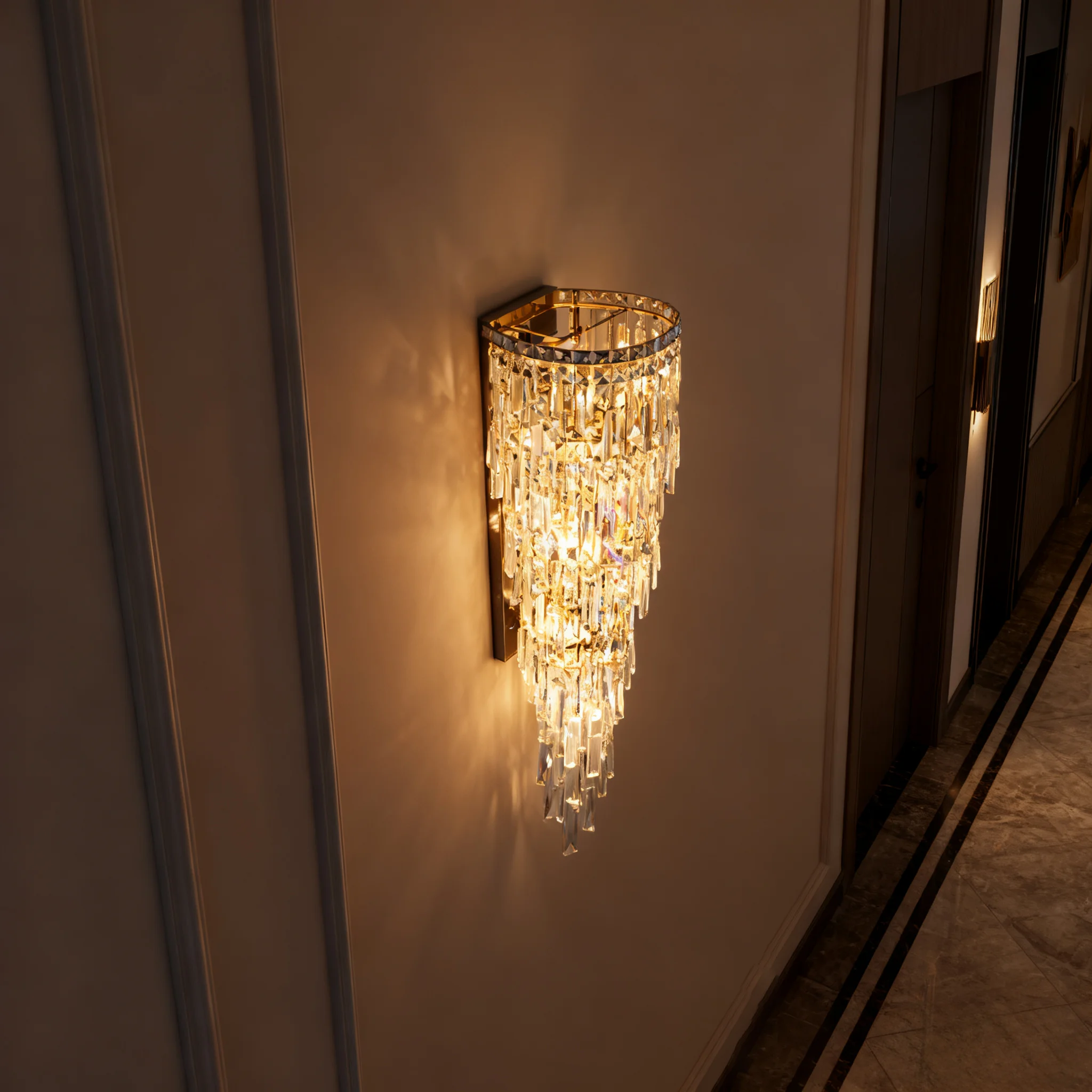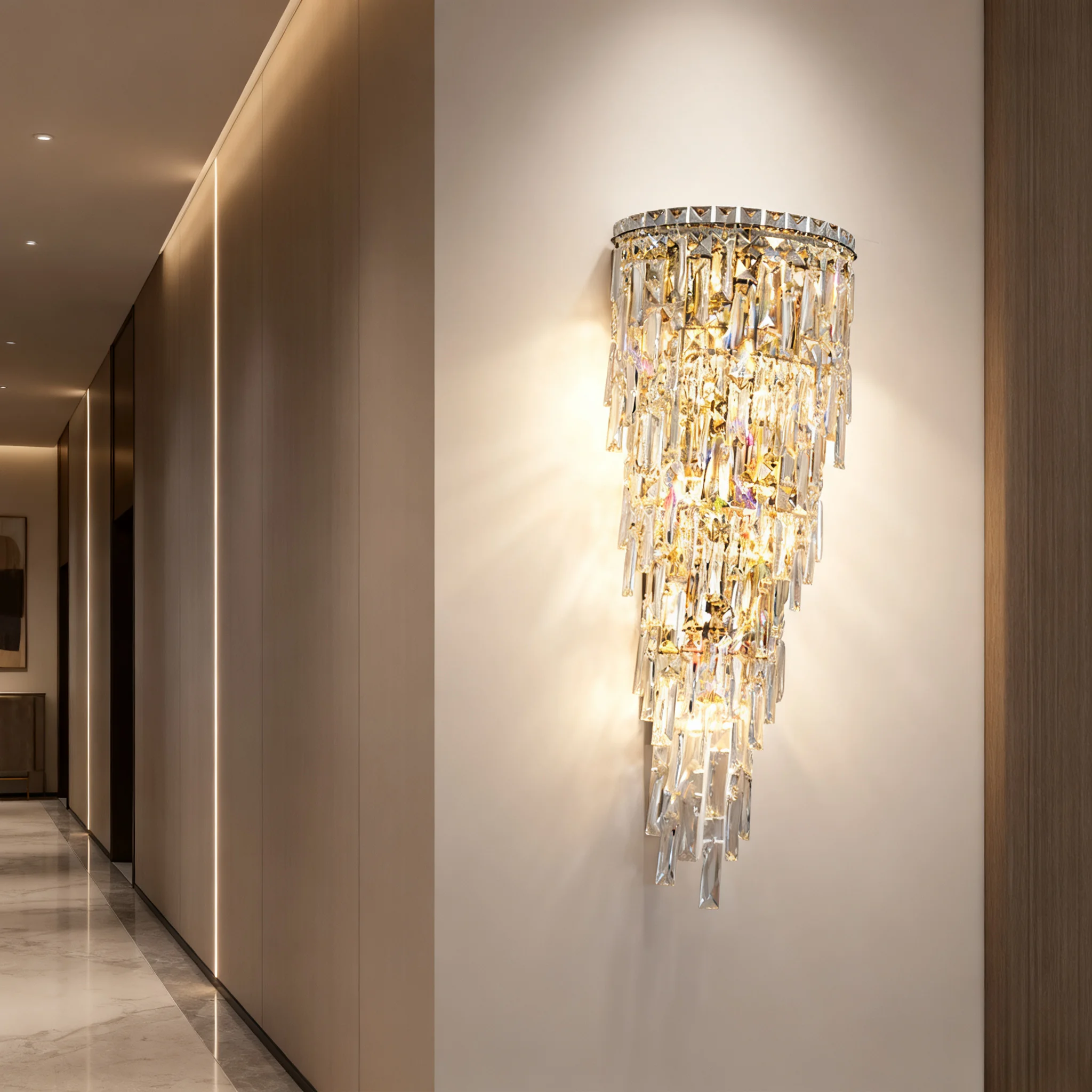JACKSUN Luxury Bedroom LED Bracket Light Stainless Steel K9 Crystal Wall Lamp Creative Staircase Corridor Wall Living Room