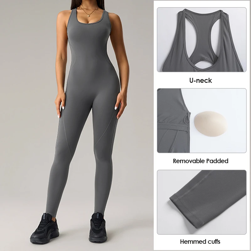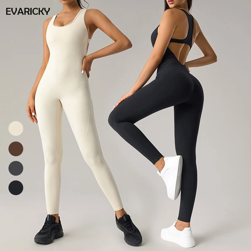 Evaricky Women's High Waisted Summer Casual Sleeveless Fitness Yoga Jumpsuit Rompers Women One Piece Sports Bodysuits Jumpsuits