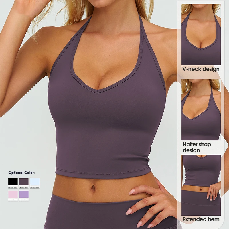 Evaricky Women's Halter V Neck Nude-Feel Yoga Backless Sports Top Hollow Athletic Top Fitness Running Casual Yoga Tank Top