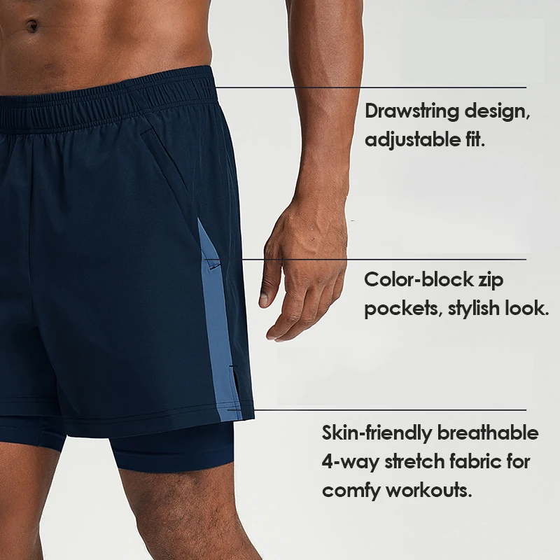 Evaricky Custom 2 in 1 Shorts for Men Color-Block Side Lined Design Breathable Running Gym Fitness Workout Casual Gym Shorts
