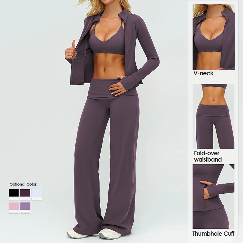 Evaricky Halter Neck Sports Bra Full Zip Sports Jacket Flared Yoga Leggings 3 Piece High Elasticity Gym Fitness Workout Sets