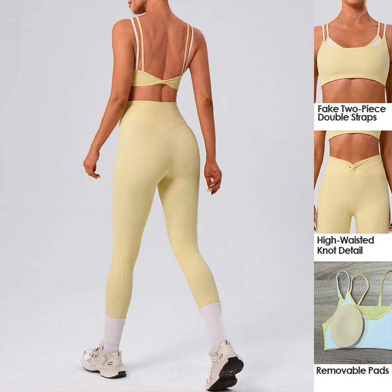 Evaricky Women's High-Waist Butt Lift Breathable Yoga Leggings & Padded Sports Bra Set with Front Logo-Solid Gym Workout Outfit