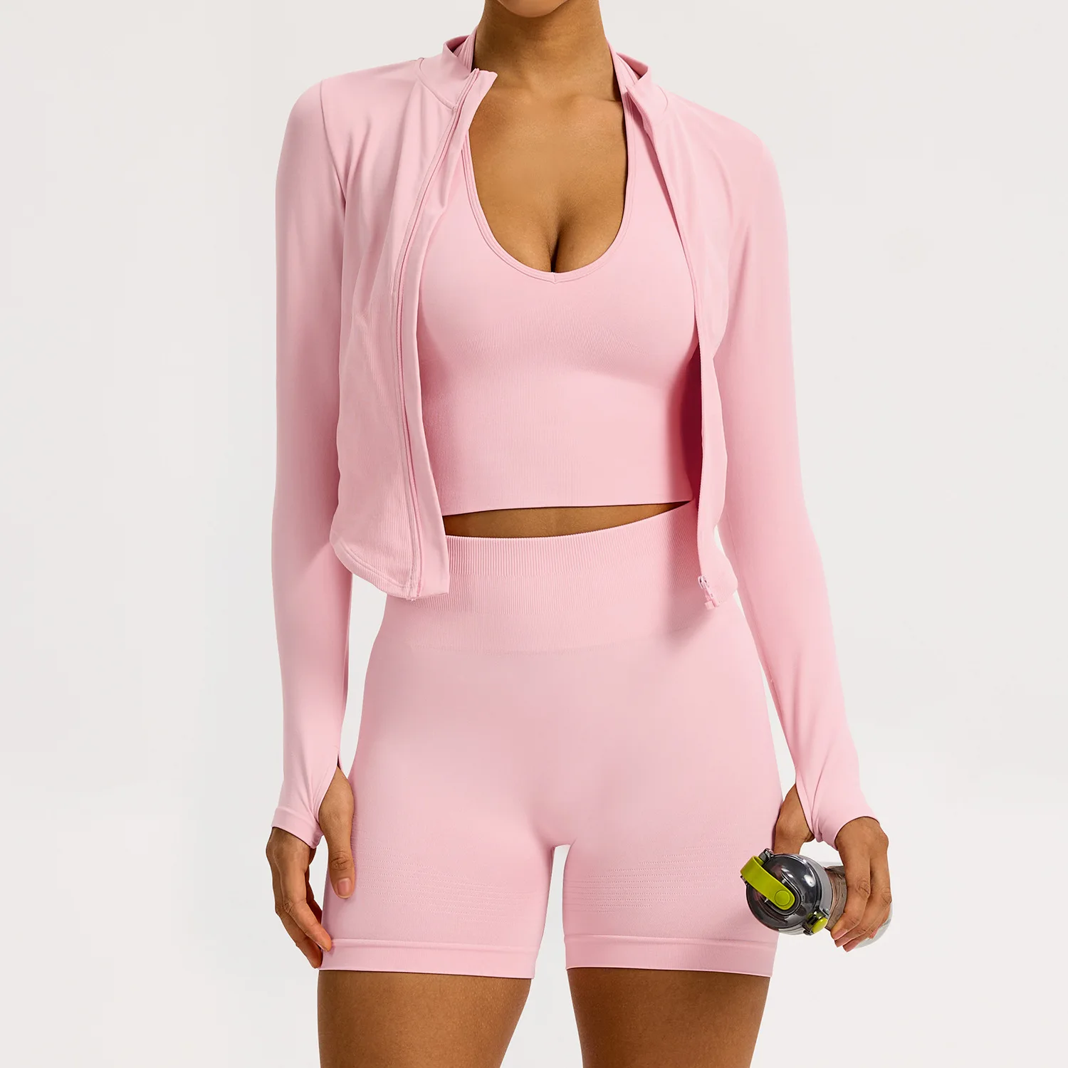 YISHENHON New Arrivals Quick-drying Women's Tight Running Sports Fitness Yoga Jacket Activewear Zip Long Sleeve Workout Crop Top
