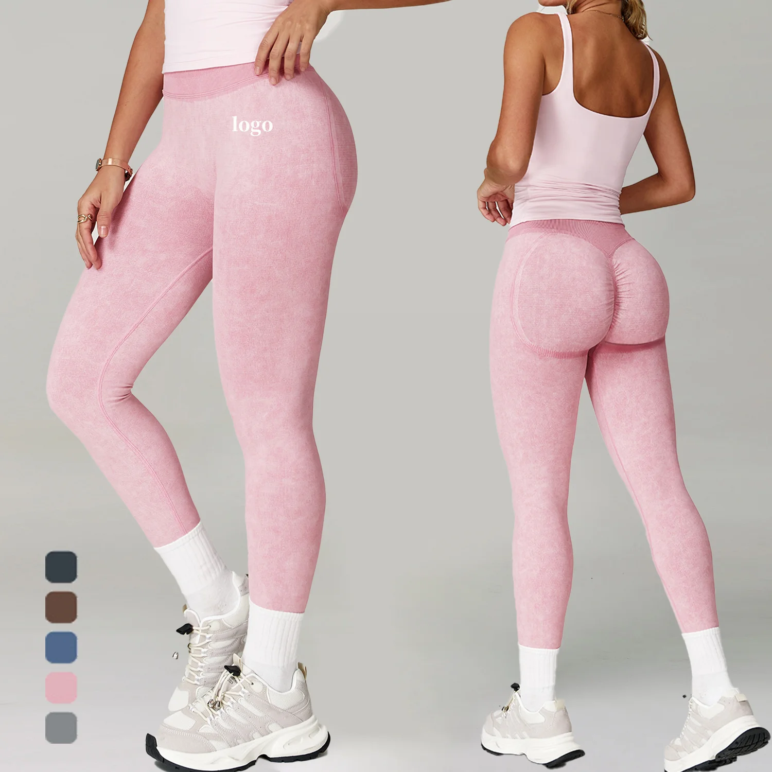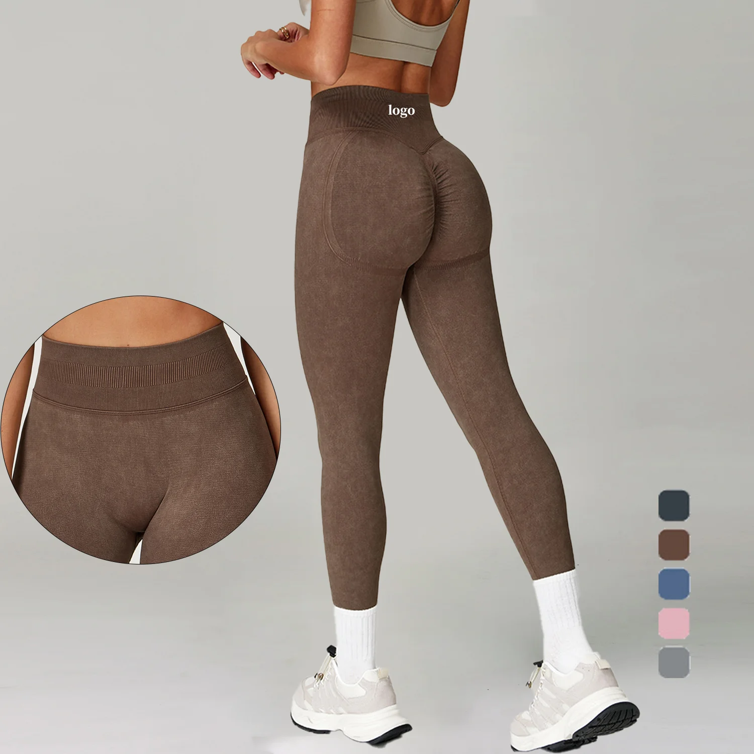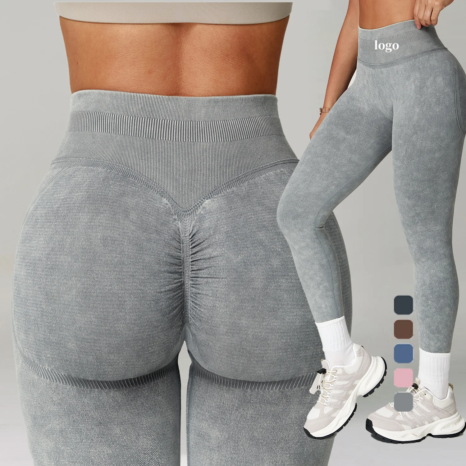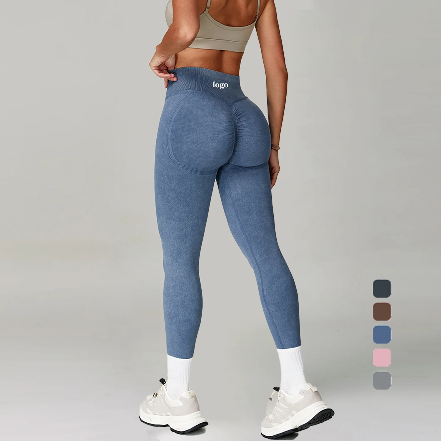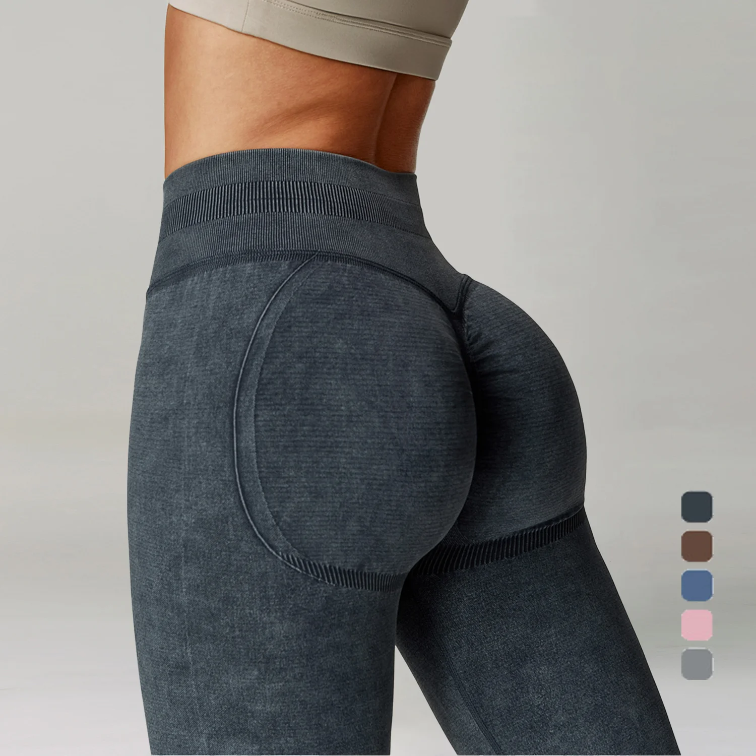 Hip Push up High Elastic Yoga Fitness Pants Custom Seamless Scrunch Bum Women Leggings 3 Section Waist Knitted Leggings
