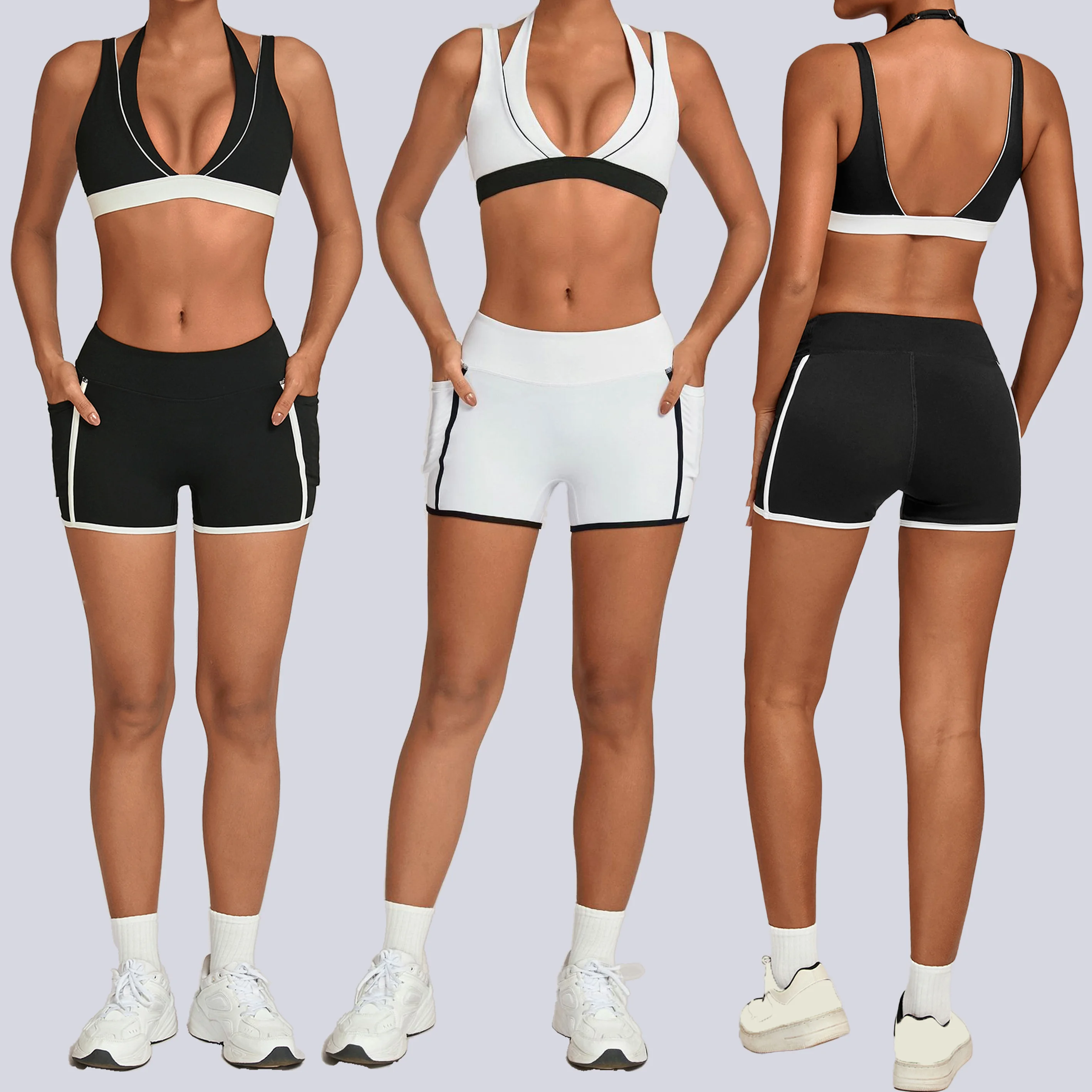 Women's 2-Piece Sports Set Notched Neck Sports Bra Shorts Spandex/Nylon Breathable High-Waisted Elastic Waist