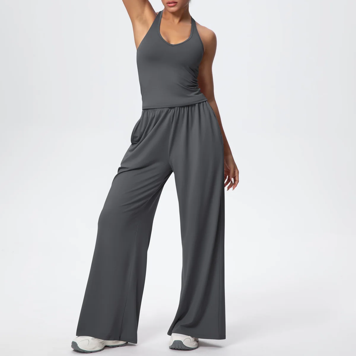 YISHENHON Recyclable Fabric Quick Dry Yoga V Waist Gym Leggings Running Workout Wide Leg Pants Flare Woman Sport Pants