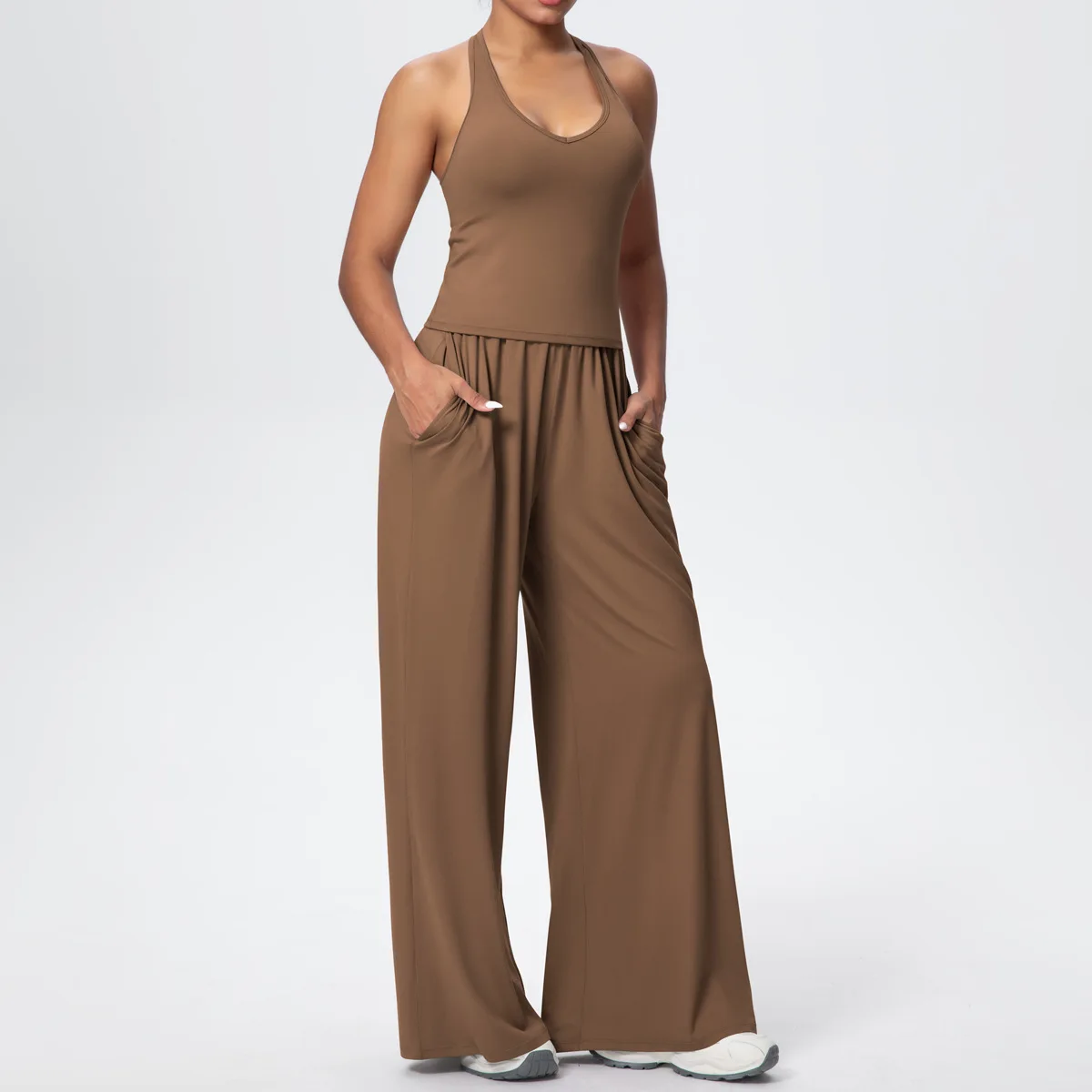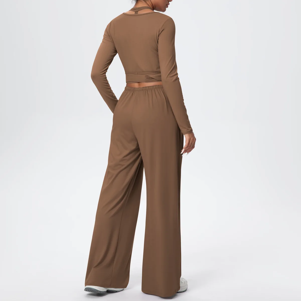 YISHENHON Recyclable Fabric Quick Dry Yoga V Waist Gym Leggings Running Workout Wide Leg Pants Flare Woman Sport Pants