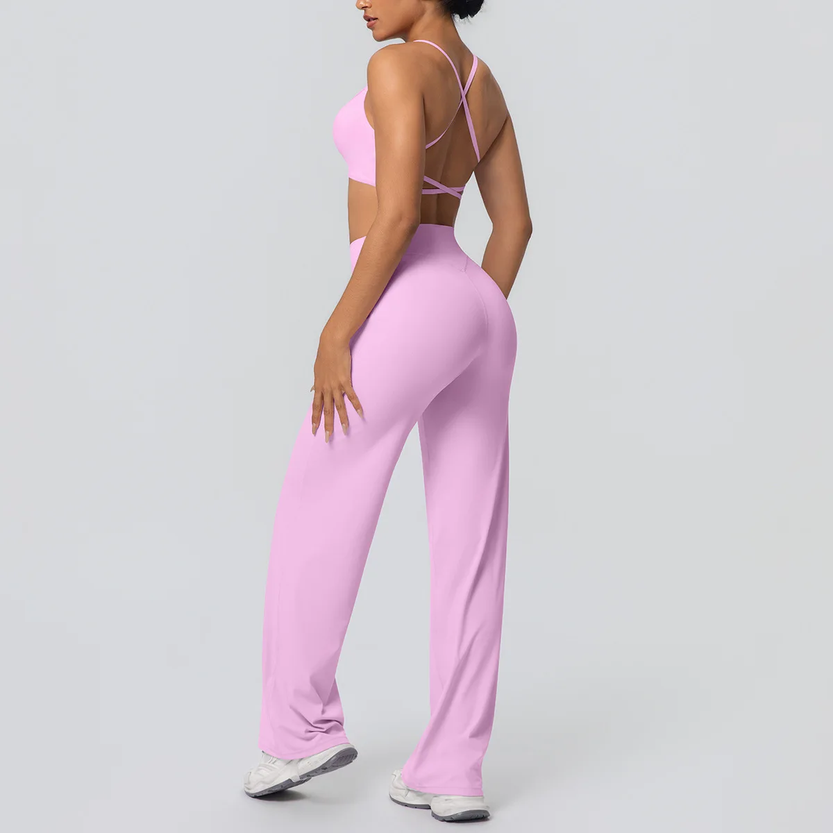 YISHENHON Recyclable Fabric Quick Dry Yoga V Waist Gym Leggings Running Workout Wide Leg Pants Flare Woman Sport Pants