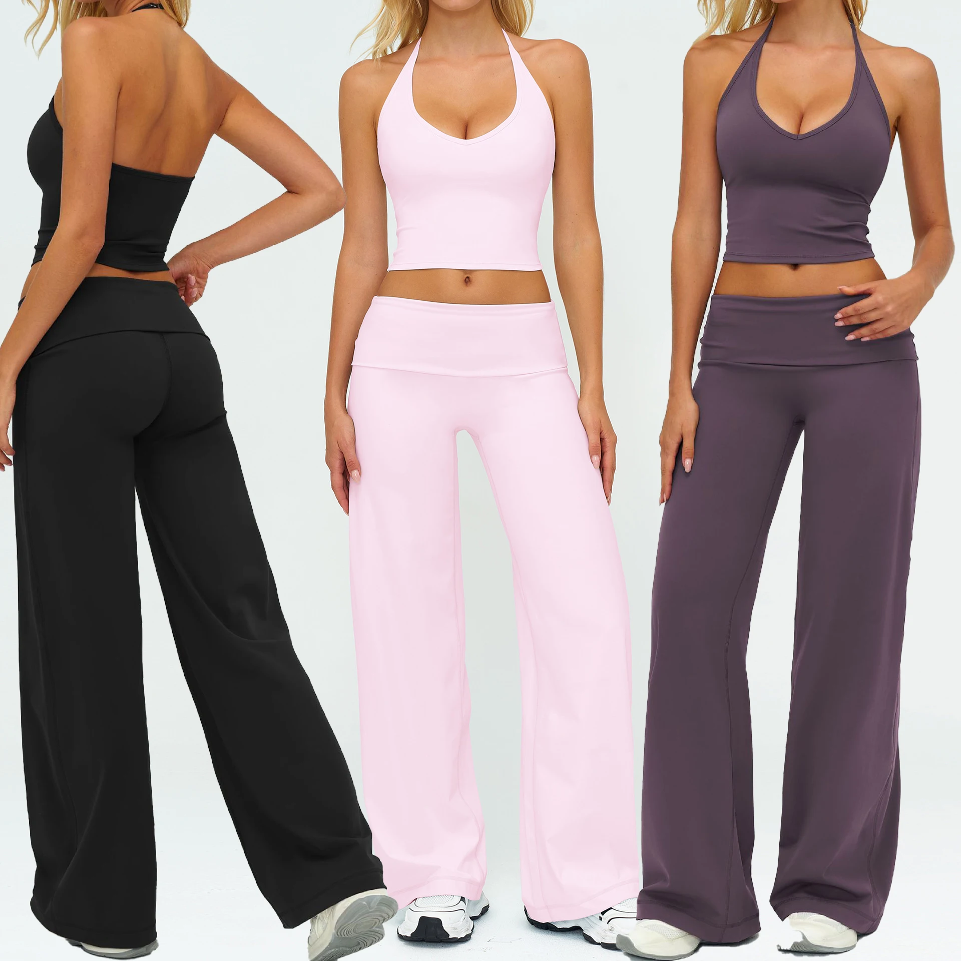 YISHENHON Recyclable Fabric Quick Dry Yoga V Waist Gym Leggings Running Workout Wide Leg Pants Flare Woman Sport Pants