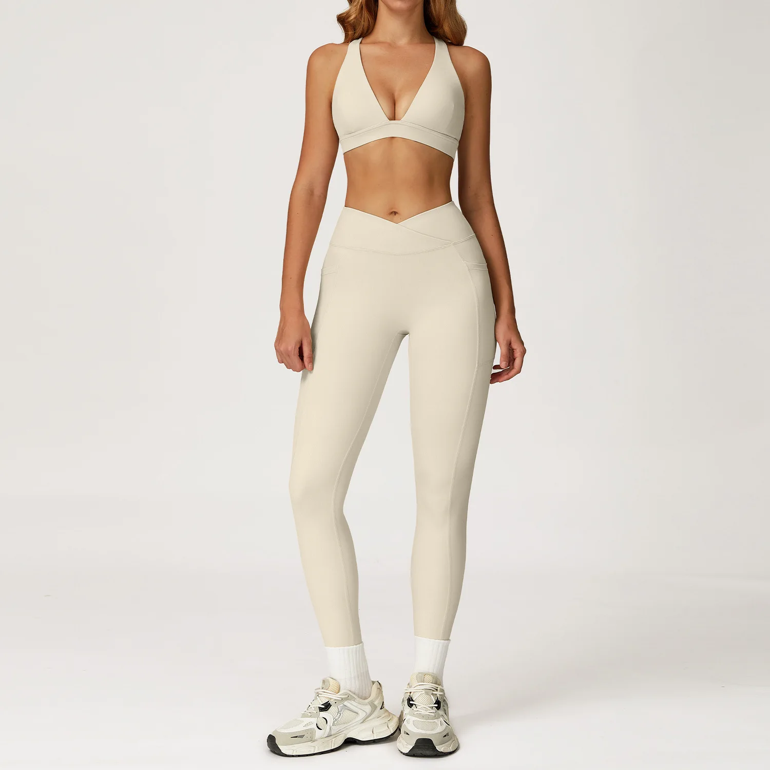 Wholesale Custom Logo Women's 2 Piece Yoga Set with Cross Back Sports Bra High Waist Pants Gym Workout Fitness Sports Outfits