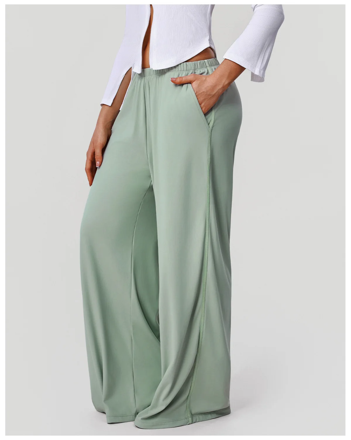 YISHENHON Recyclable Fabric Quick Dry Yoga V Waist Gym Leggings Running Workout Wide Leg Pants Flare Woman Sport Pants