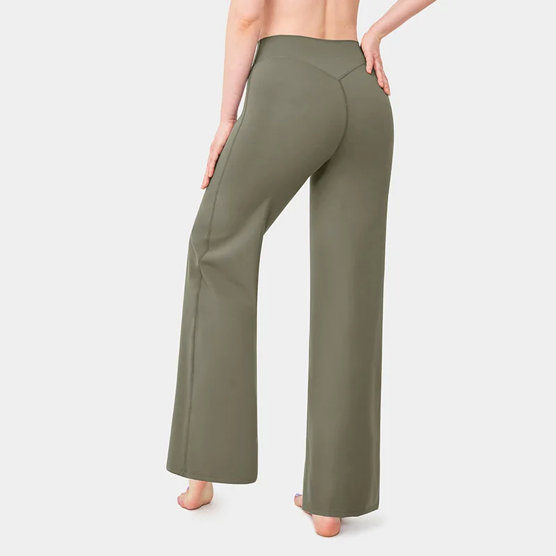 YISHENHON Recyclable Fabric Quick Dry Yoga V Waist Gym Leggings Running Workout Wide Leg Pants Flare Woman Sport Pants