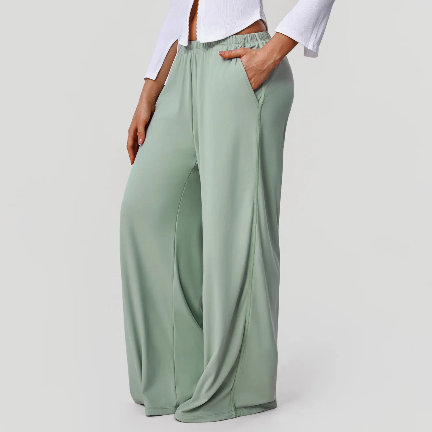 YISHENHON Recyclable Fabric Quick Dry Yoga V Waist Gym Leggings Running Workout Wide Leg Pants Flare Woman Sport Pants