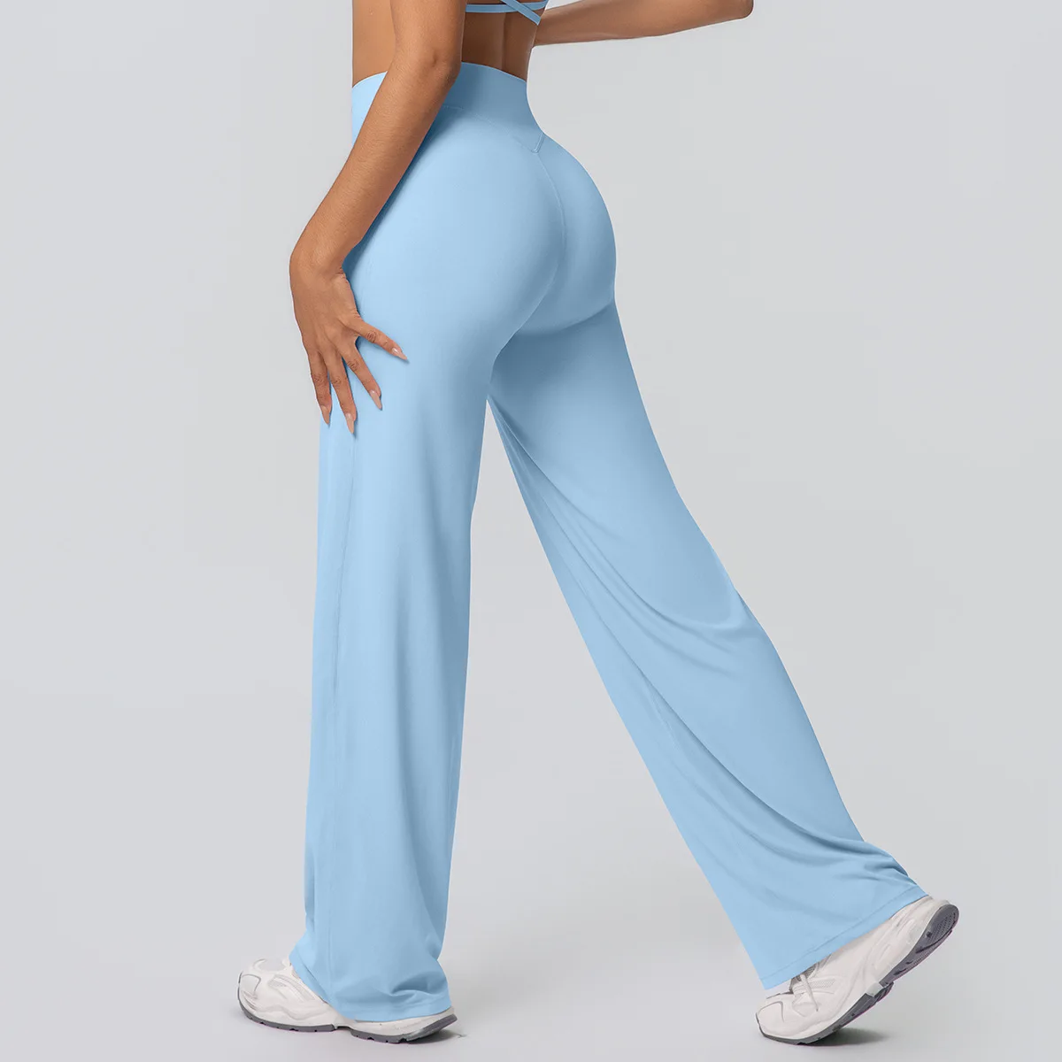 YISHENHON Recyclable Fabric Quick Dry Yoga V Waist Gym Leggings Running Workout Wide Leg Pants Flare Woman Sport Pants