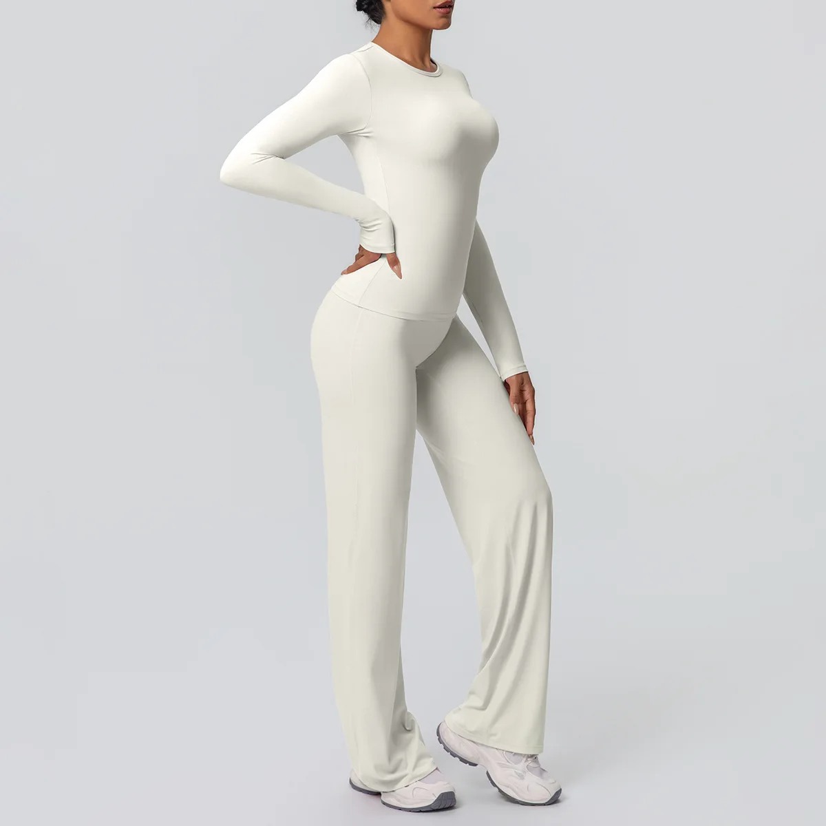 YISHENHON Recyclable Fabric Quick Dry Yoga V Waist Gym Leggings Running Workout Wide Leg Pants Flare Woman Sport Pants