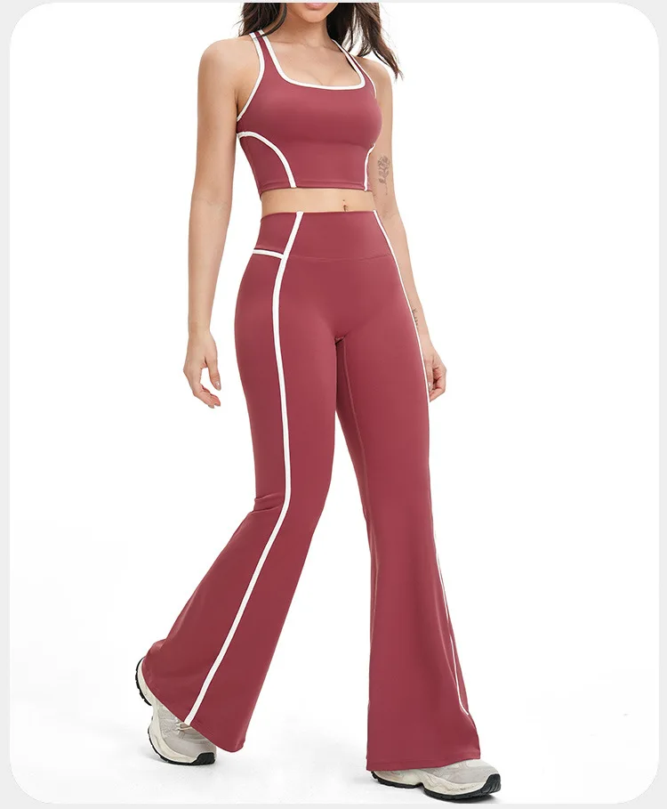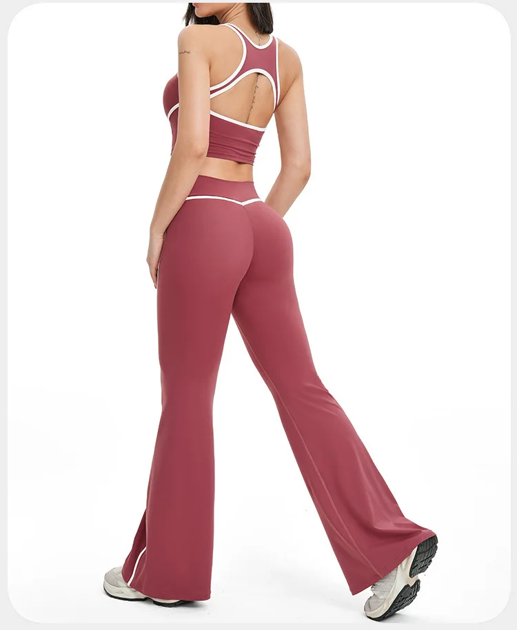 YISHENHON Recyclable Fabric Quick Dry Yoga V Waist Gym Leggings Running Workout Wide Leg Pants Flare Woman Sport Pants