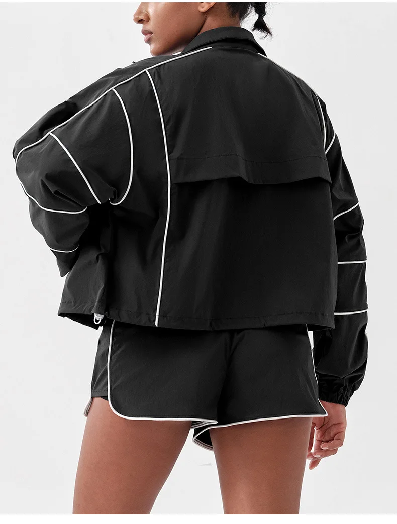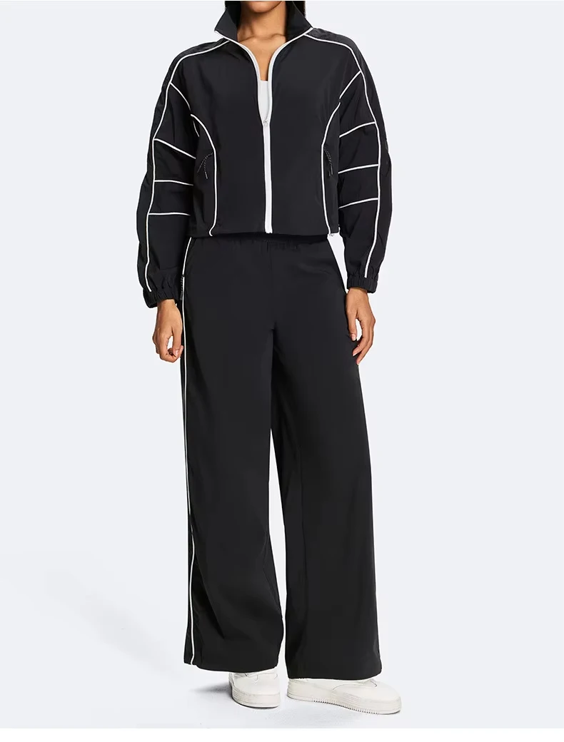 Lightweight Breathable Lined Woven Women's Sports Outfit with Zipper Loose-fitting for Autumn/Winter Running