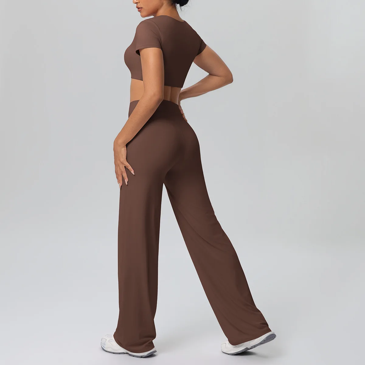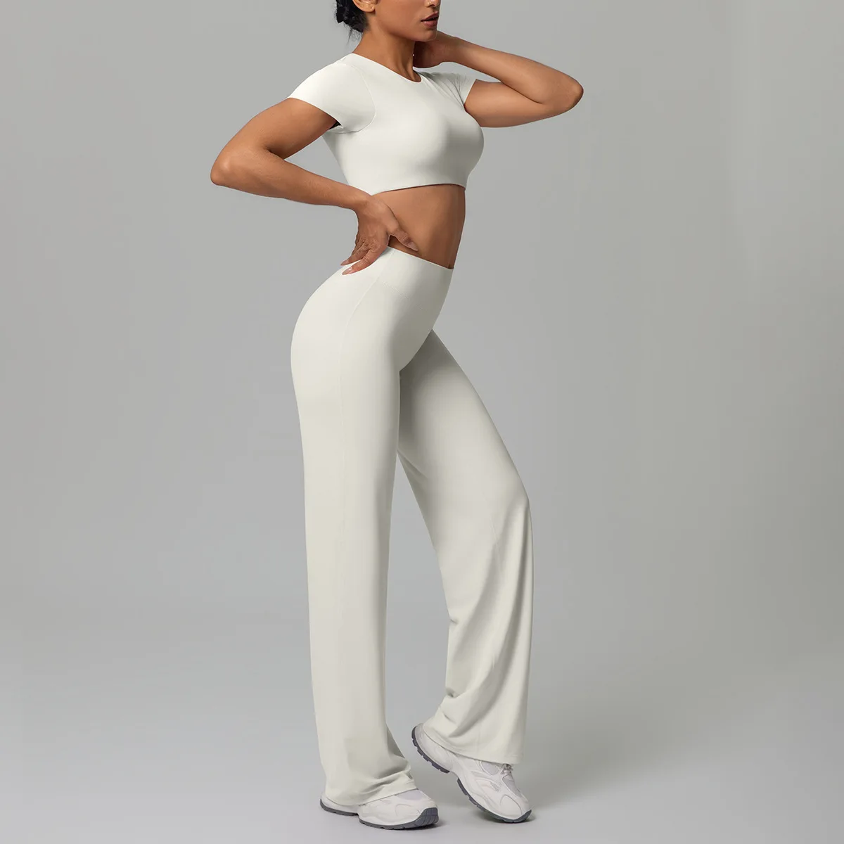 YISHENHON Recyclable Fabric Quick Dry Yoga V Waist Gym Leggings Running Workout Wide Leg Pants Flare Woman Sport Pants