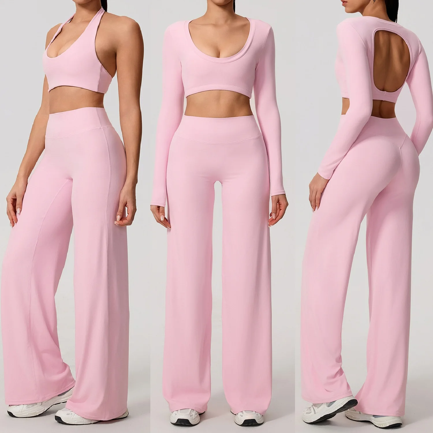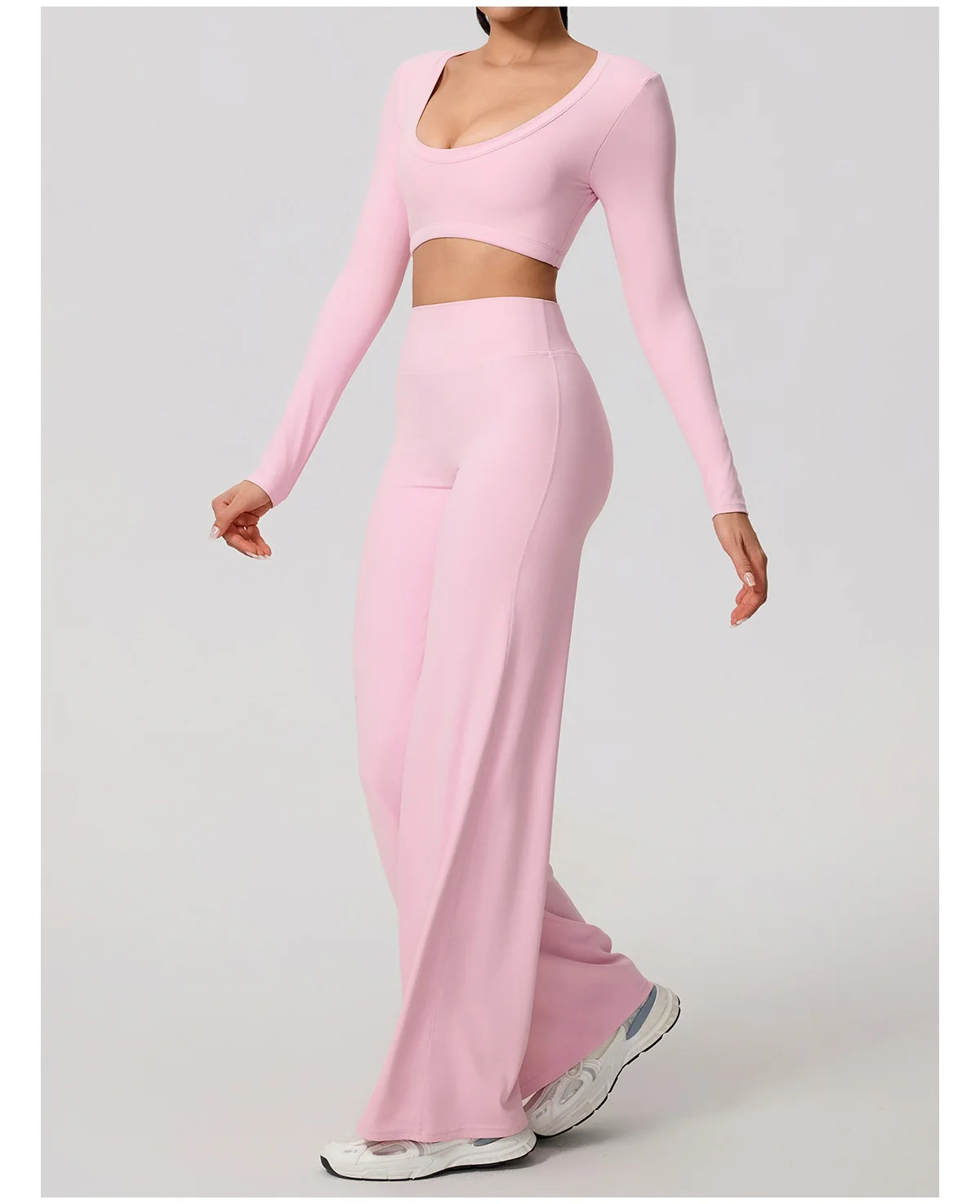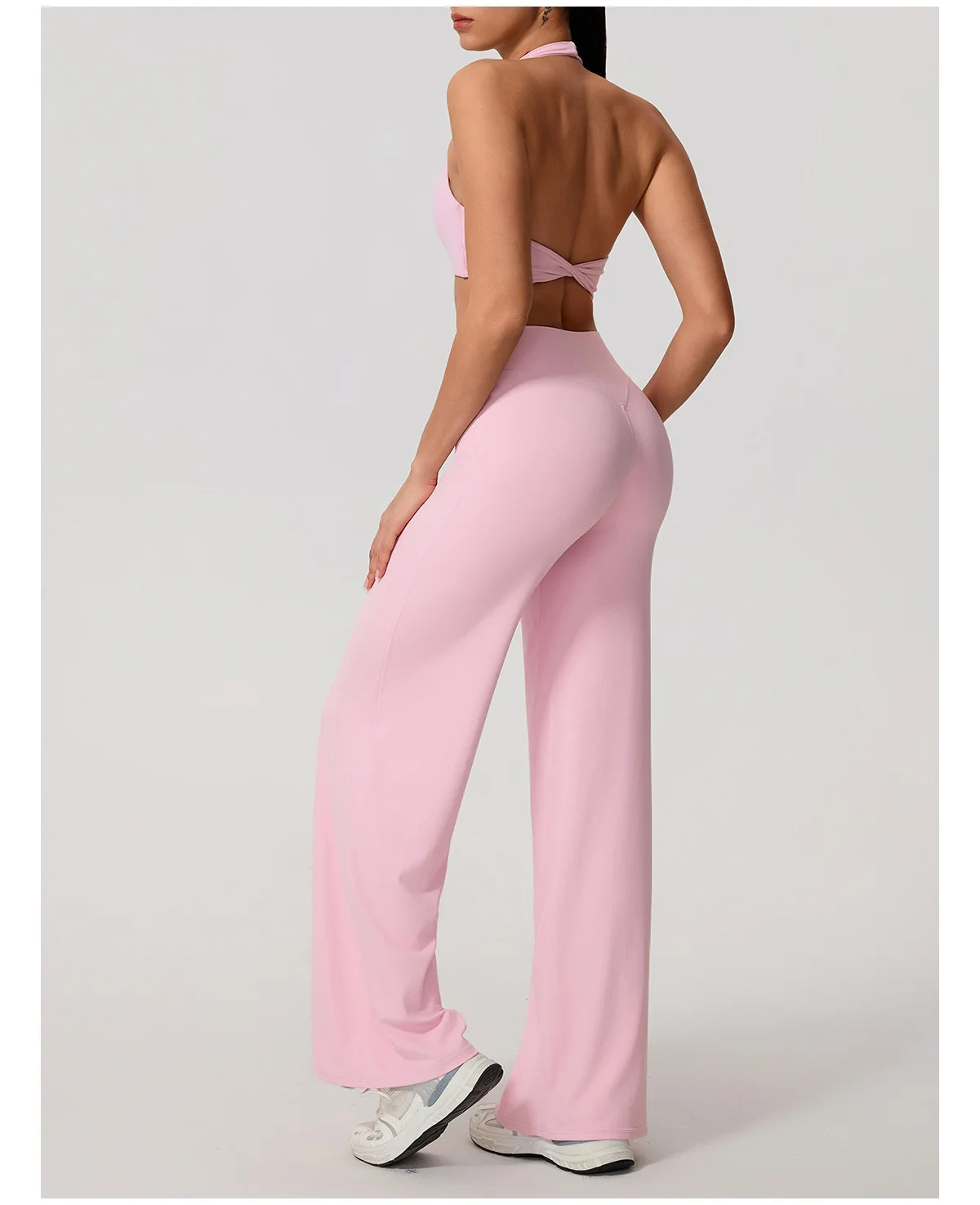YISHENHON Recyclable Fabric Quick Dry Yoga V Waist Gym Leggings Running Workout Wide Leg Pants Flare Woman Sport Pants