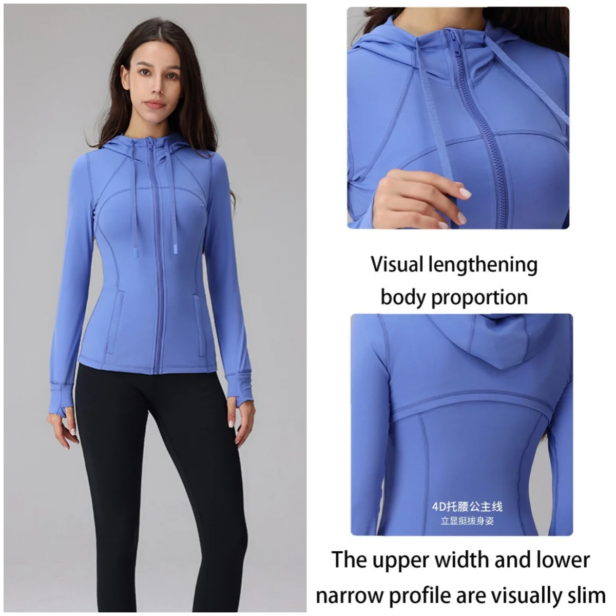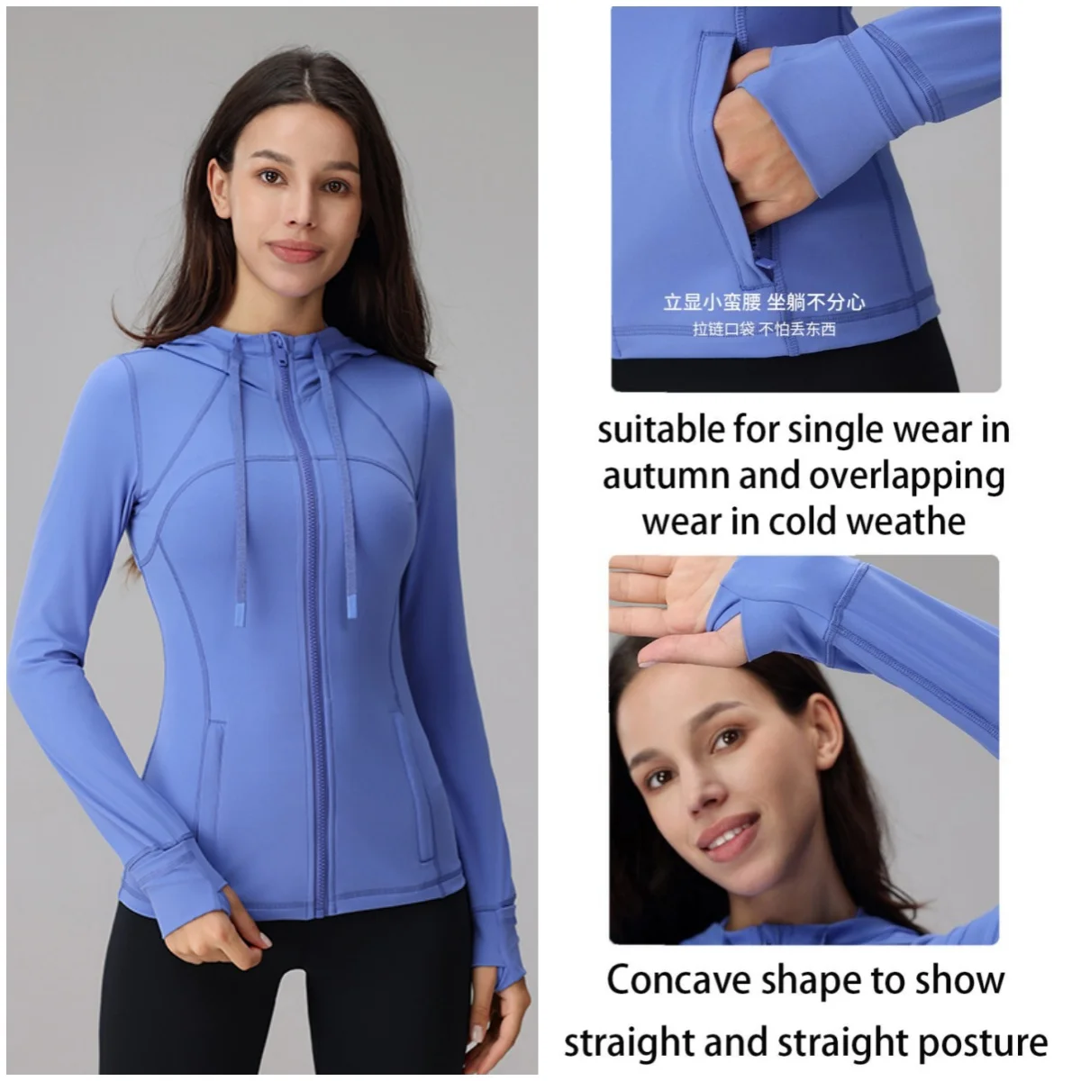 YISHENHON Custom Logo Slim Workout Top Yoga Jackets Zipper Womens Tight Quick Dry Long Sleeve Yoga Sports Coat With a Hat