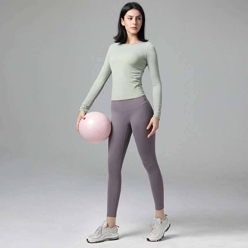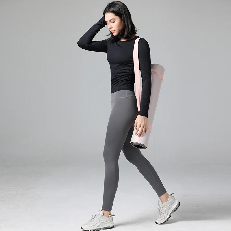 High Quality Women Sports Nylon Leisure Set High Waist Yoga Tracksuit Tight Quick Dry Sweat Absorption Long Sleeve Fitness Set