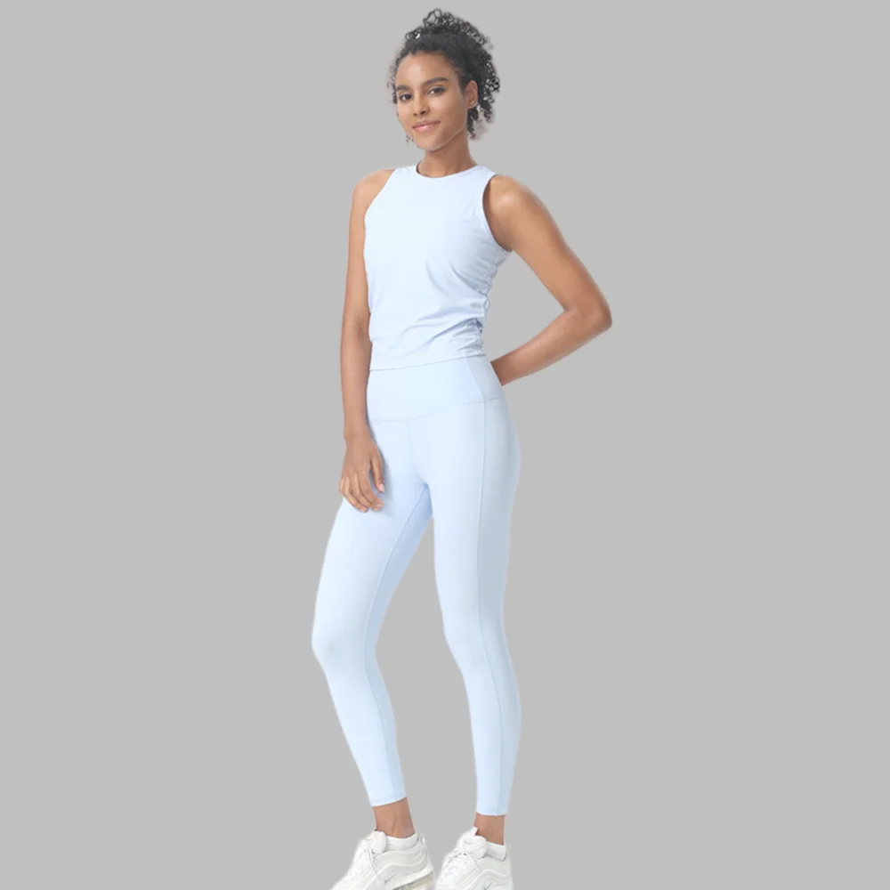 Summer Ladies Gym Wear Skinny Lounge Wear Ribbed 2 Piece Sleeveless Crop Tops Leggings Lounge Set Two Piece Loungewear Sets