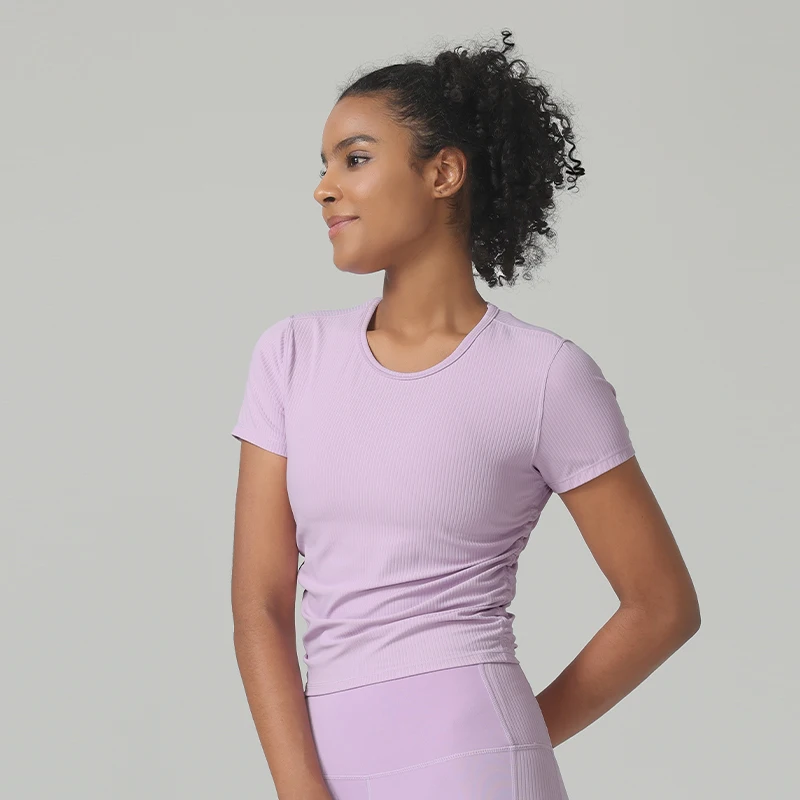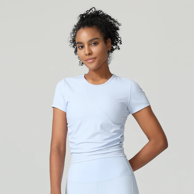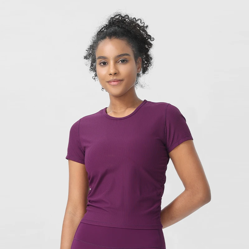 Custom Seamless Short-sleeved Sports Yoga T-shirts Quick Dry Ribbed Knit T-shirts Tight Top Fitness Yoga Gym T Shirt for Women