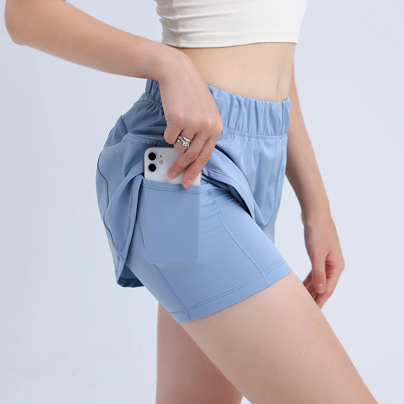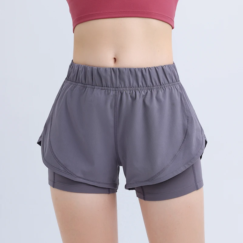 Double Layer Gym Shorts Fashion 2 in 1 Running Yoga Shorts Casual High Waist Workout Women Athletic Yoga Shorts with Pockets