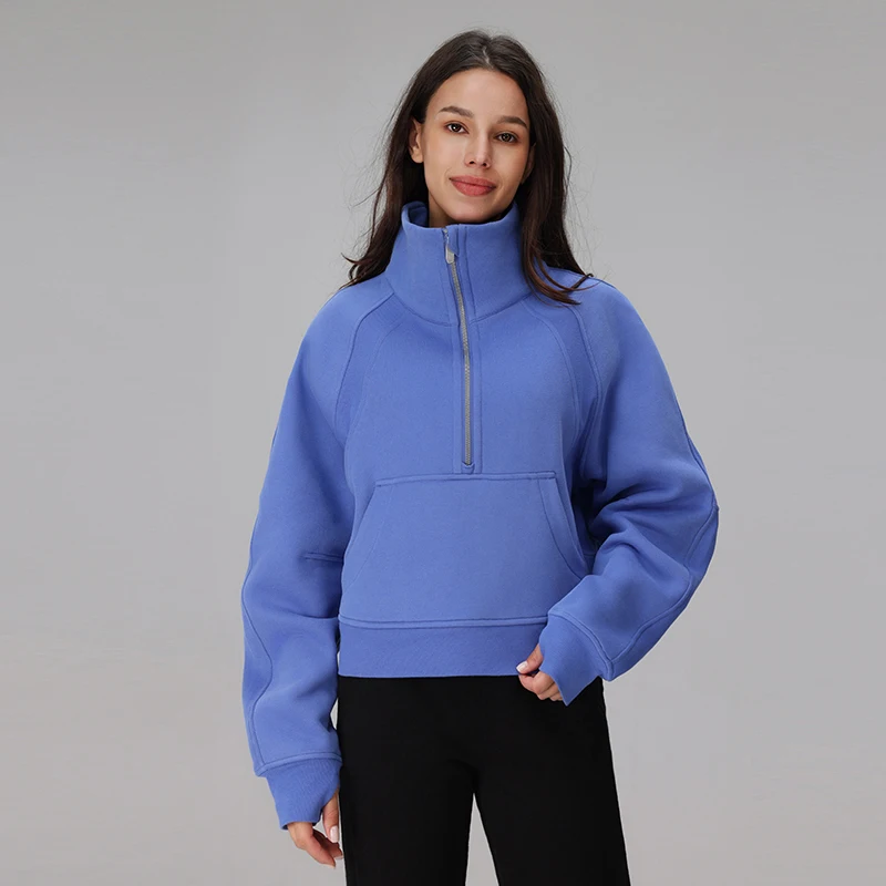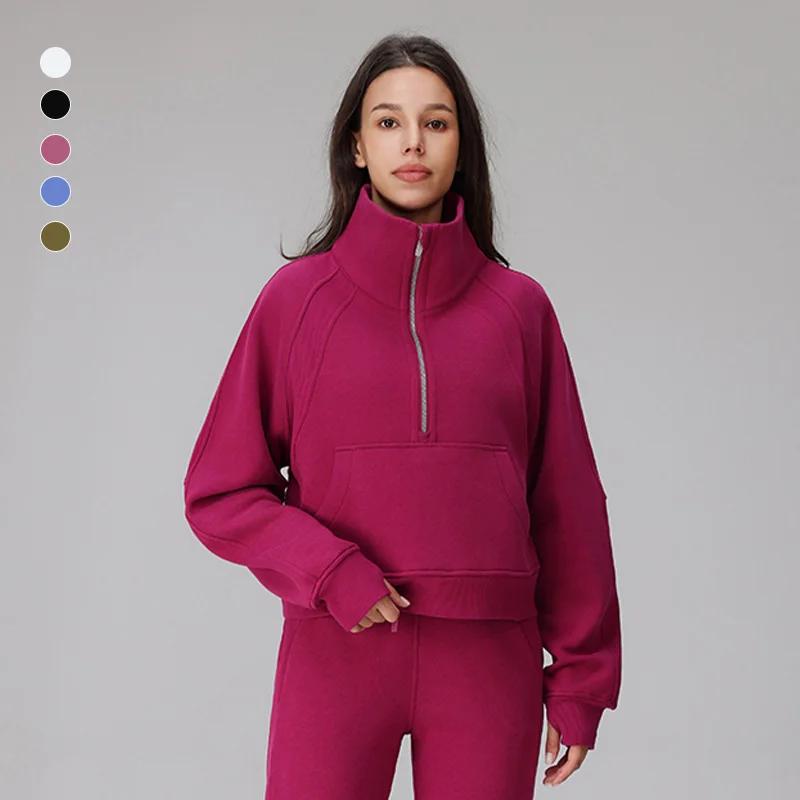 Women's Half-Zip Pullover Top High Stand-Up Collar Autumn Winter Sports Sweatshirt Warm Fleece Breathable New Outer Sports Wear