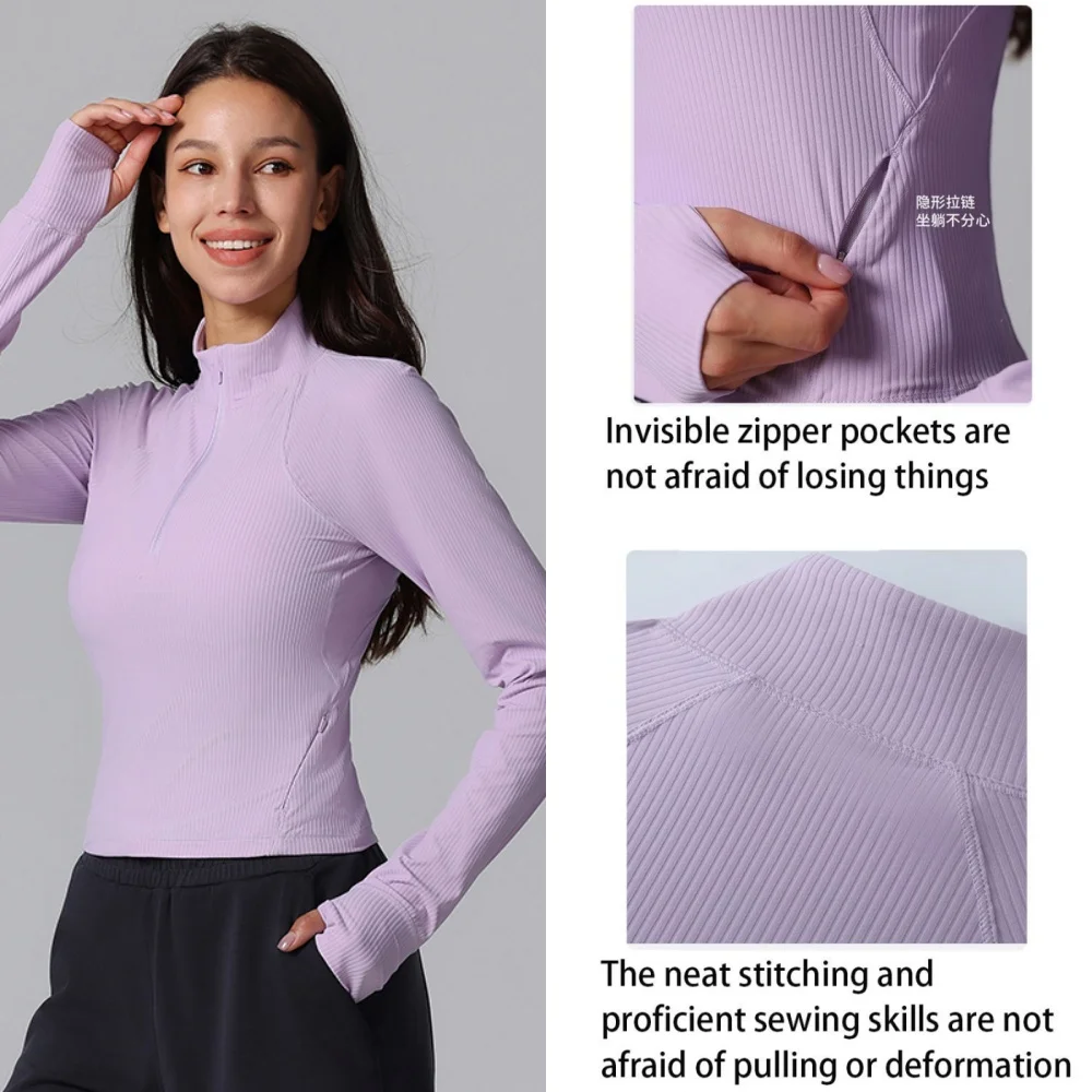 YISHENHON New Arrivals Quick-drying Women's Tight Running Sports Fitness Yoga Jacket Activewear Zip Long Sleeve Workout Crop Top