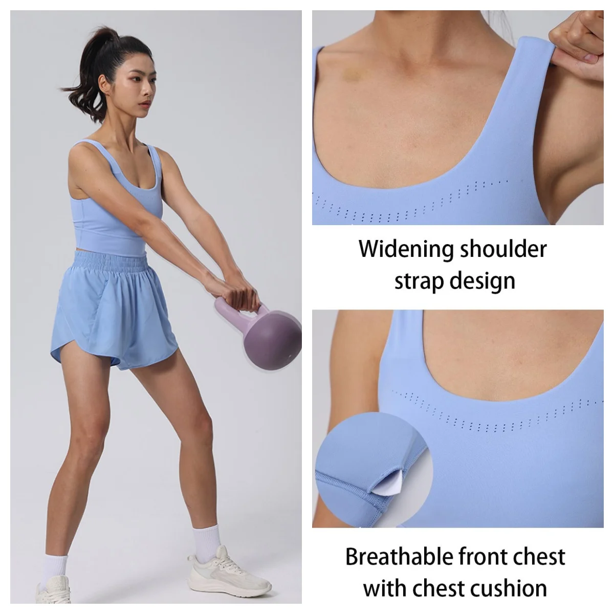 High Quality Quick-Drying Fitness Shockproof Removable Pads Yoga Sports Bra Women Breathable Padded Tank Top with Sexy Mesh