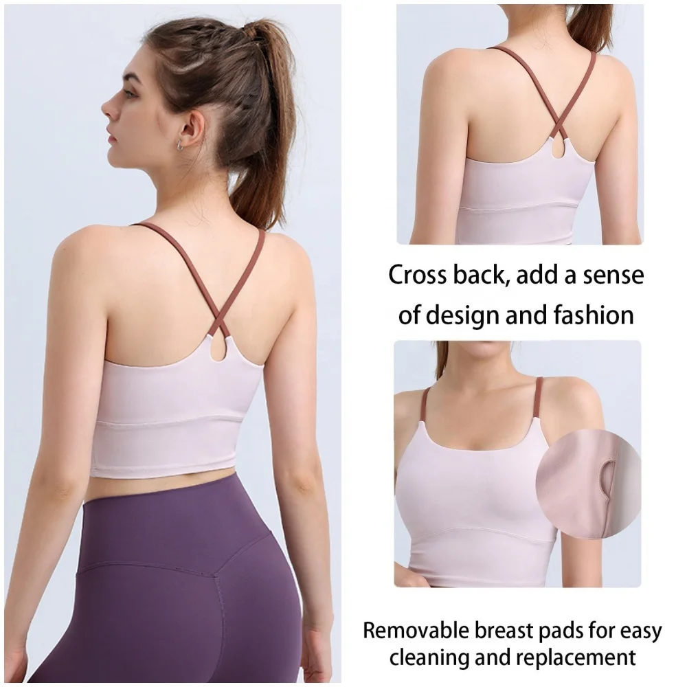 Removable Pads Super Soft Fabric Gym Sports Bras for Women Fitness Lightweight Breathable Middle Support Cross Back Sports Bra