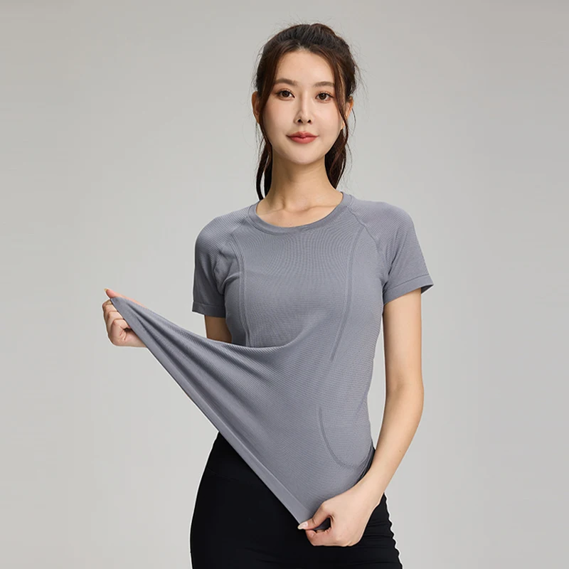 YISHENHON 2026 New Design Quick Drying Casual Tight Short Sleeve Yoga Wear Women High Intensity Running Sports Fitness T-shirt
