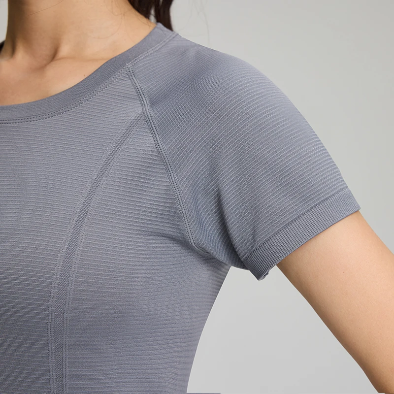 Custom Gym Summer T-shirt Running Cycling Sports Fitness Short Sleeved Top Training Breathable Slim Fit Seamless Yoga Top Women