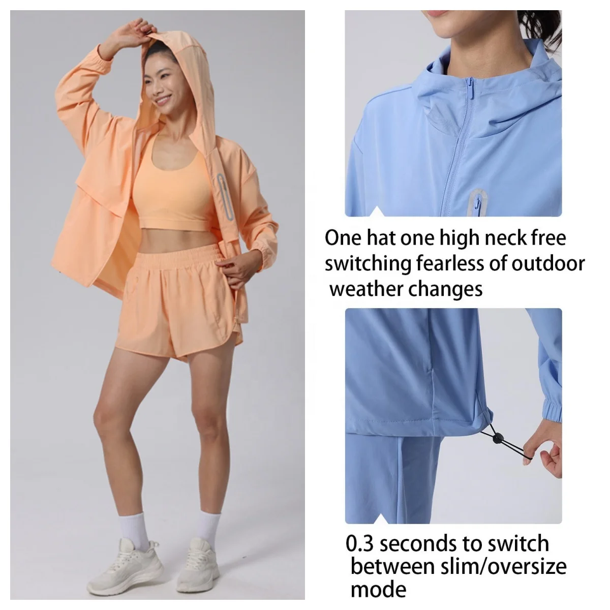YISHENHON Custom Logo Slim Workout Top Yoga Jackets Zipper Womens Tight Quick Dry Long Sleeve Yoga Sports Coat With a Hat
