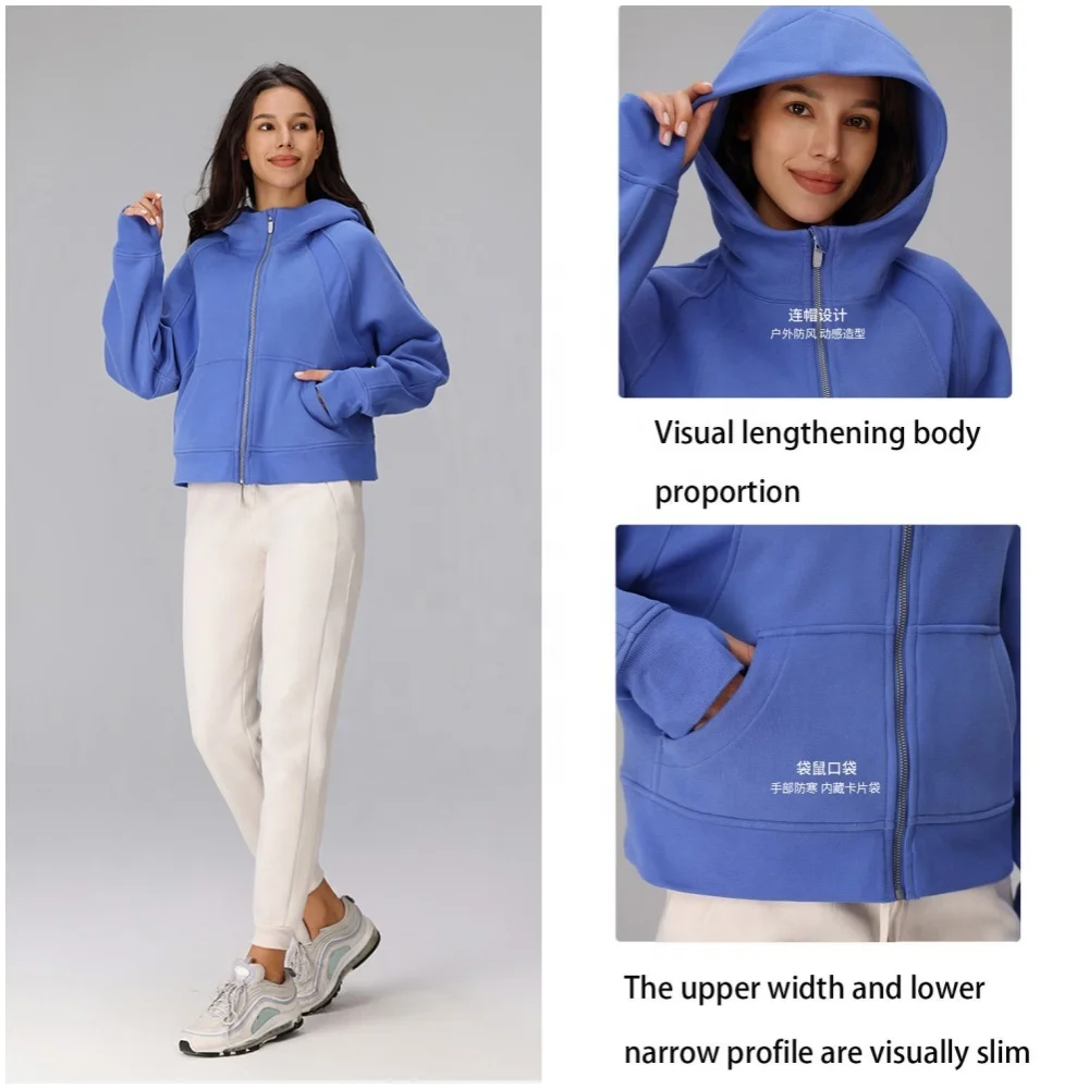 Custom Cotton Training Athletic Zip up Fitted Activewear Women Sweat Wicking Running Workout Hoodie Top Zipper Sport Gym Jackets
